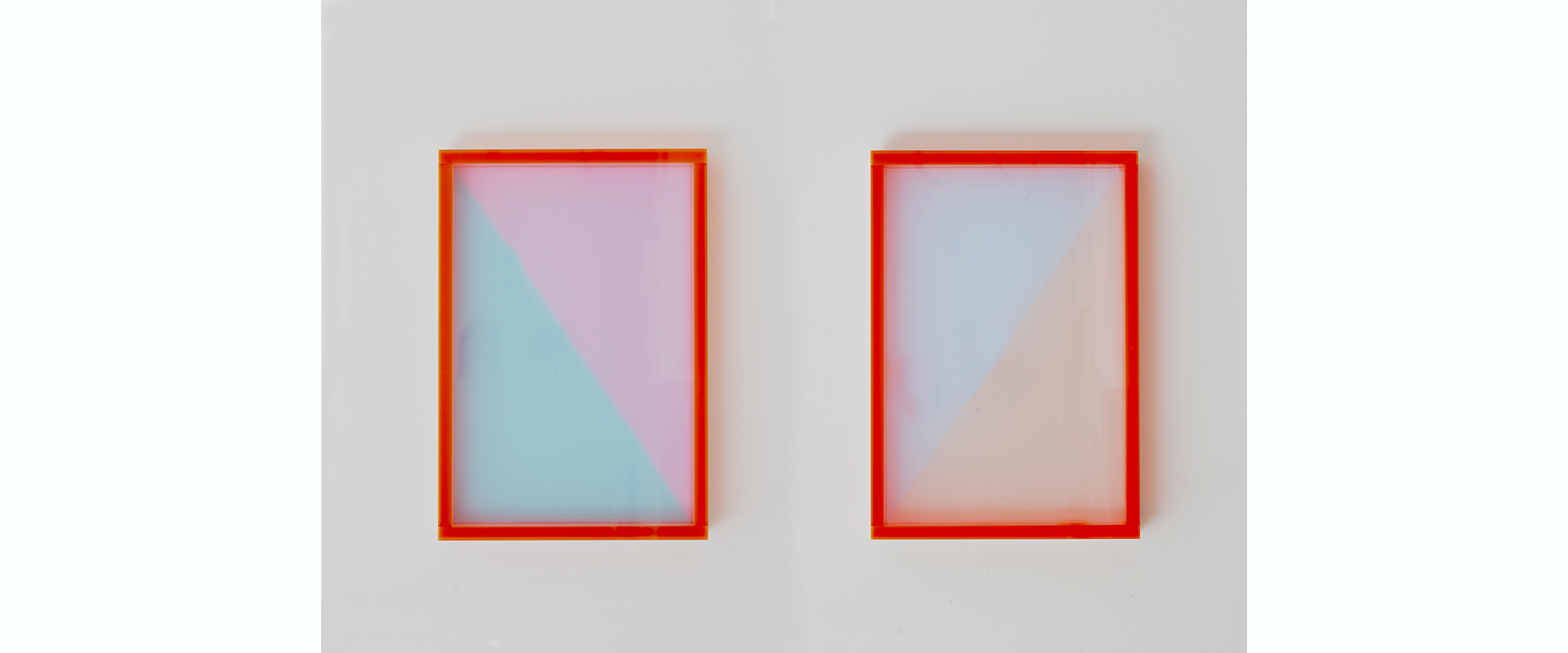 Regine Schumann hingegen bedient sich externer Lichtquellen für ihre Objekte aus fluoreszierendem Acrylglas. Dabei knüpft sie an Traditionen der Light and Space-Bewegung seit den 1960er Jahren sowie an die konkrete Farbfeldmalerei an. Im Tageslicht strahlen insbesondere die Kanten ihrer Arbeiten und je nach Lichteinfall entsteht ein farbiger Schatten. Im Schwarzlicht erstrahlen ihre Arbeiten vollends und verwandeln den gesamten Raum in ein farbiges Gesamtkunstwerk. Licht und Farbe sind in Regine Schumanns Werk untrennbar verbunden.